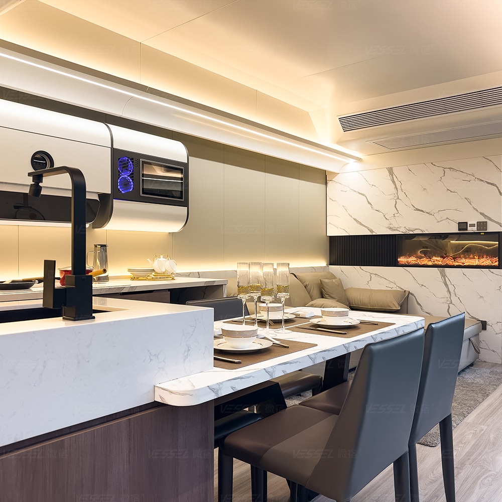 Targeting at the global dwelling market as a multi-functional model that focuses on both comfort and practicality, Space Capsule model V9 integrates various home appliances. It is also able to match the strict building codes and regulations in majority counties around the world. It brought luxuries lifestyle to another level.